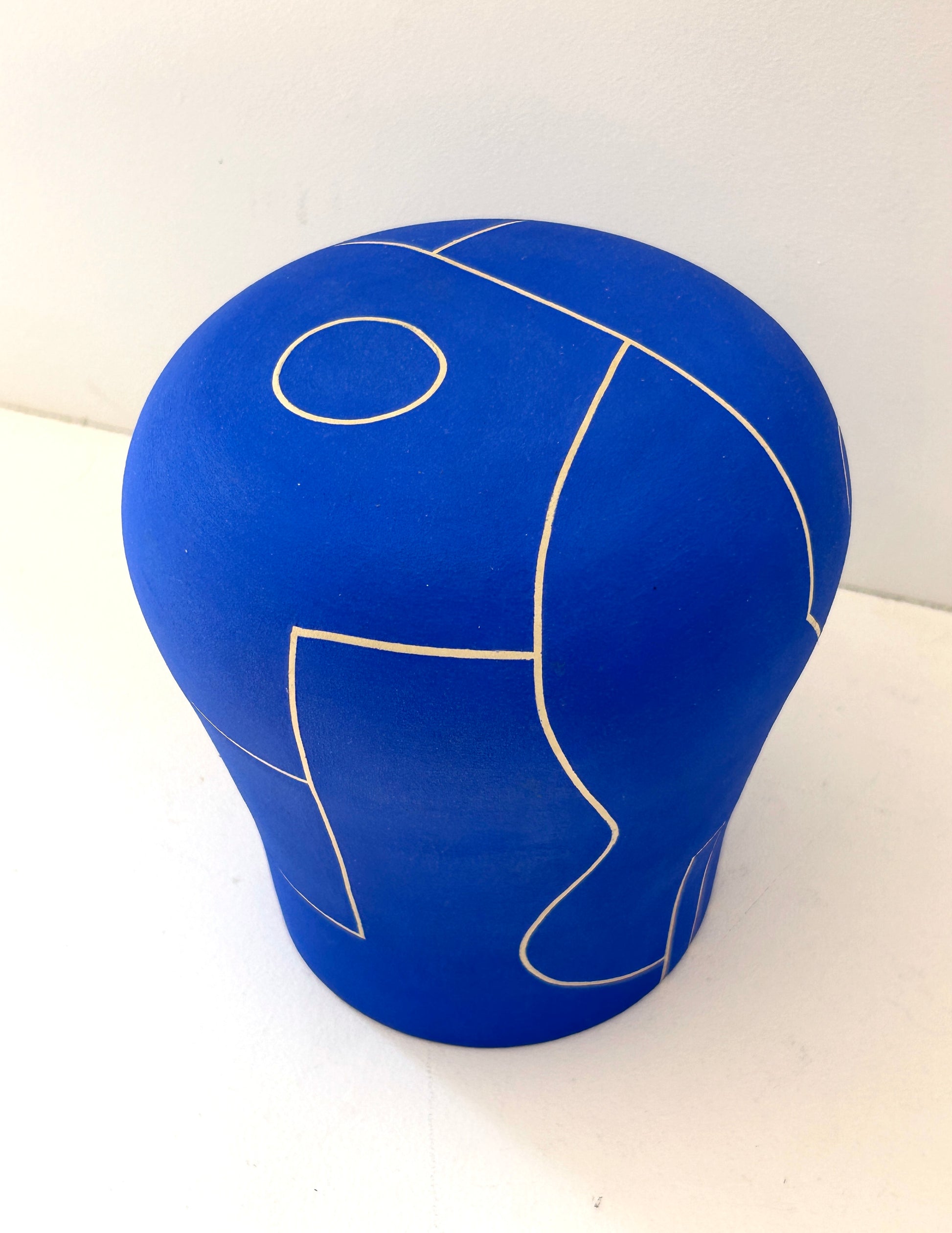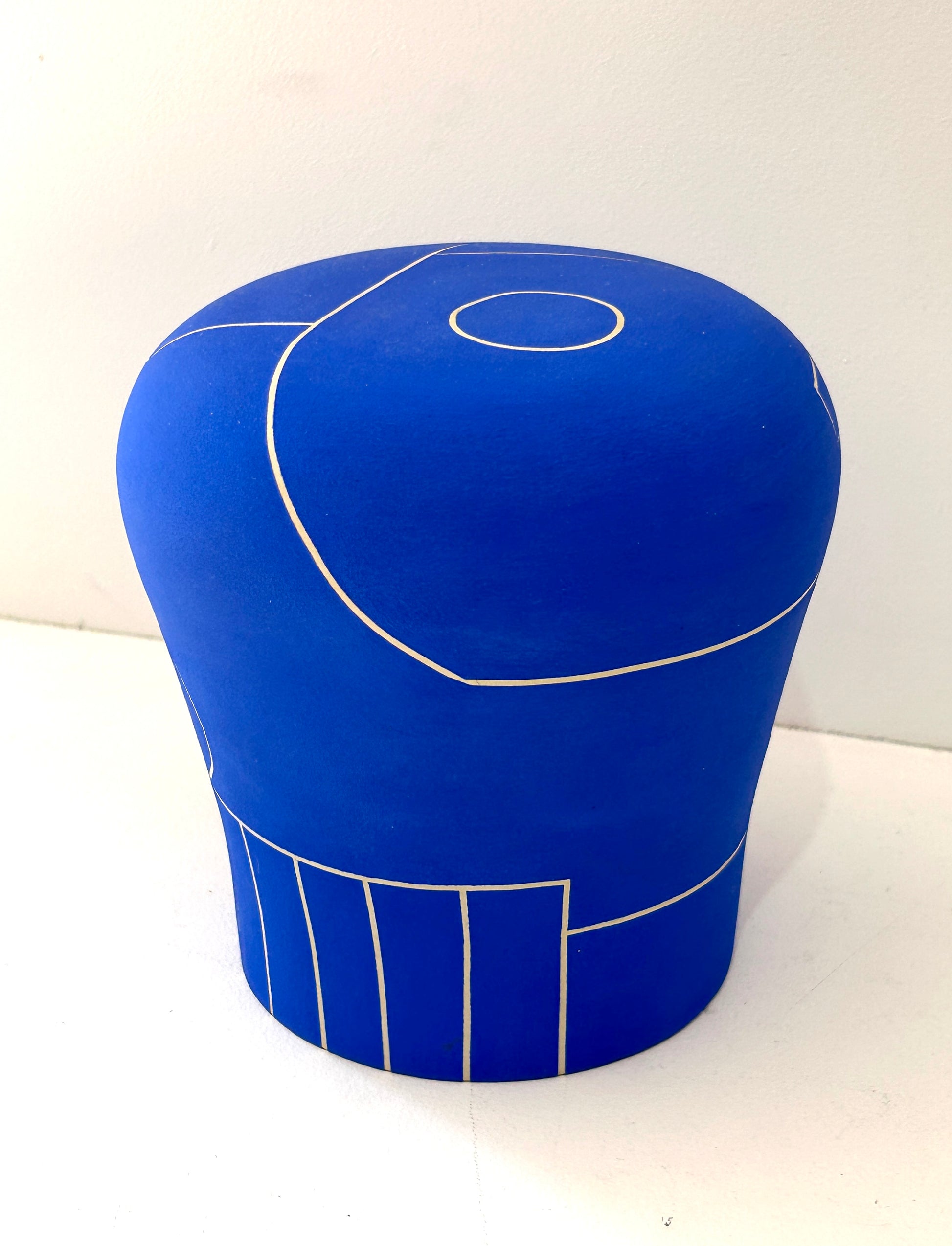 Cette pièce unique incarne la rencontre entre design contemporain et inspiration marine. Réalisée à la main, cette céramique aux lignes blanches sur fond bleu intense évoque les formes organiques et les tracés fluides des cordages et amarres.