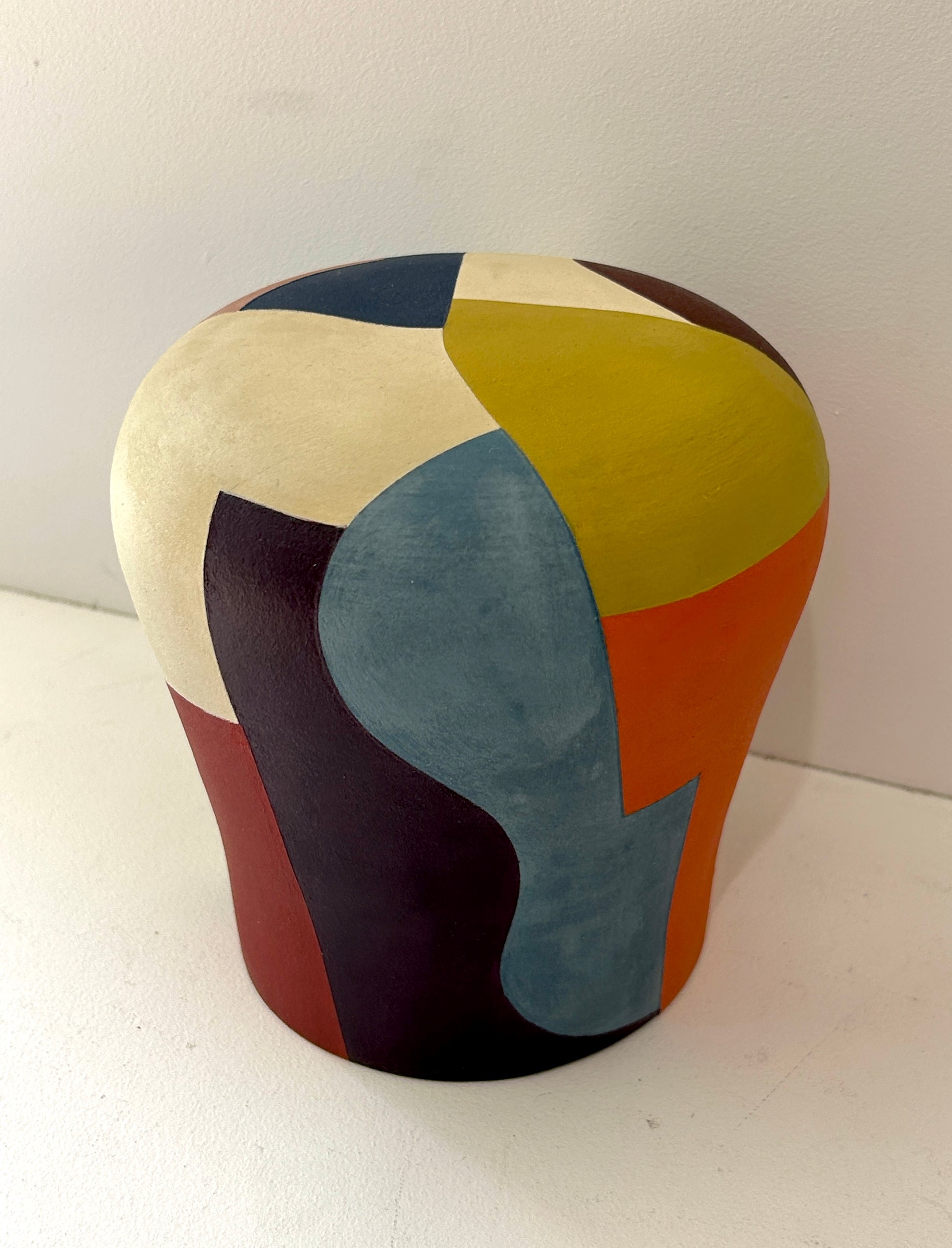 Cette céramique unique réalisée par Audrey Noël est une véritable œuvre d’art, alliant design contemporain et savoir-faire artisanal. Inspirée par les formes organiques et la géométrie abstraite, elle se distingue par ses contrastes de couleurs chaudes et froides, créant un jeu visuel fort et harmonieux.