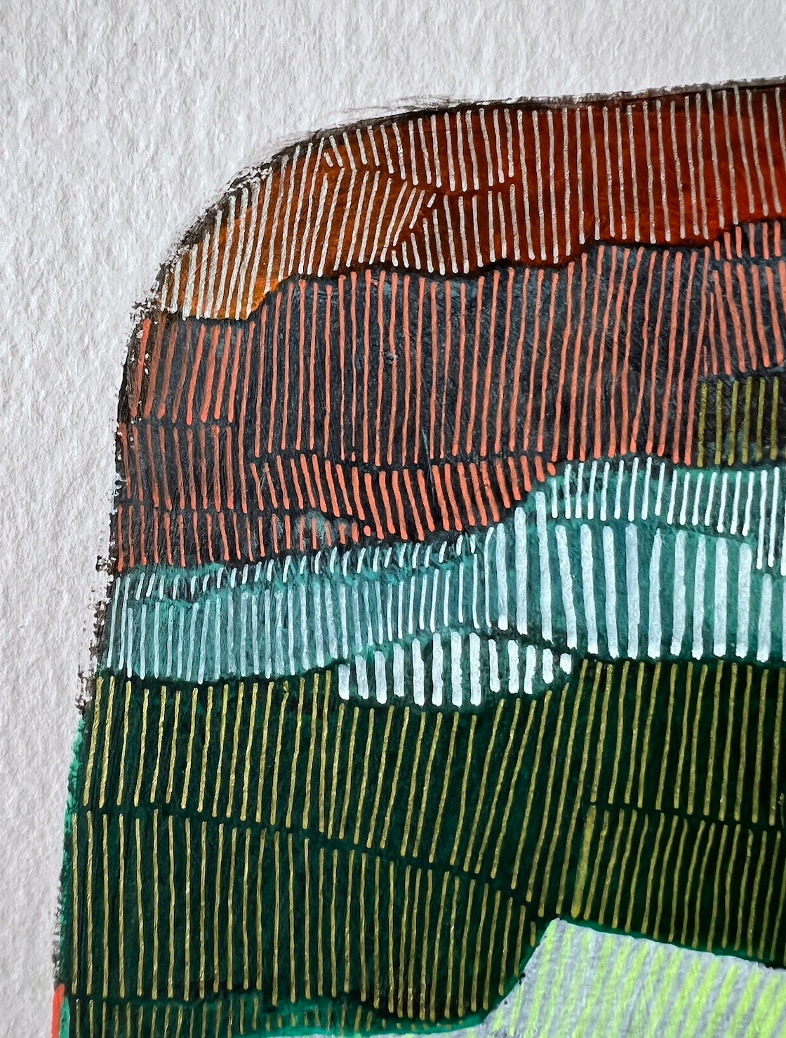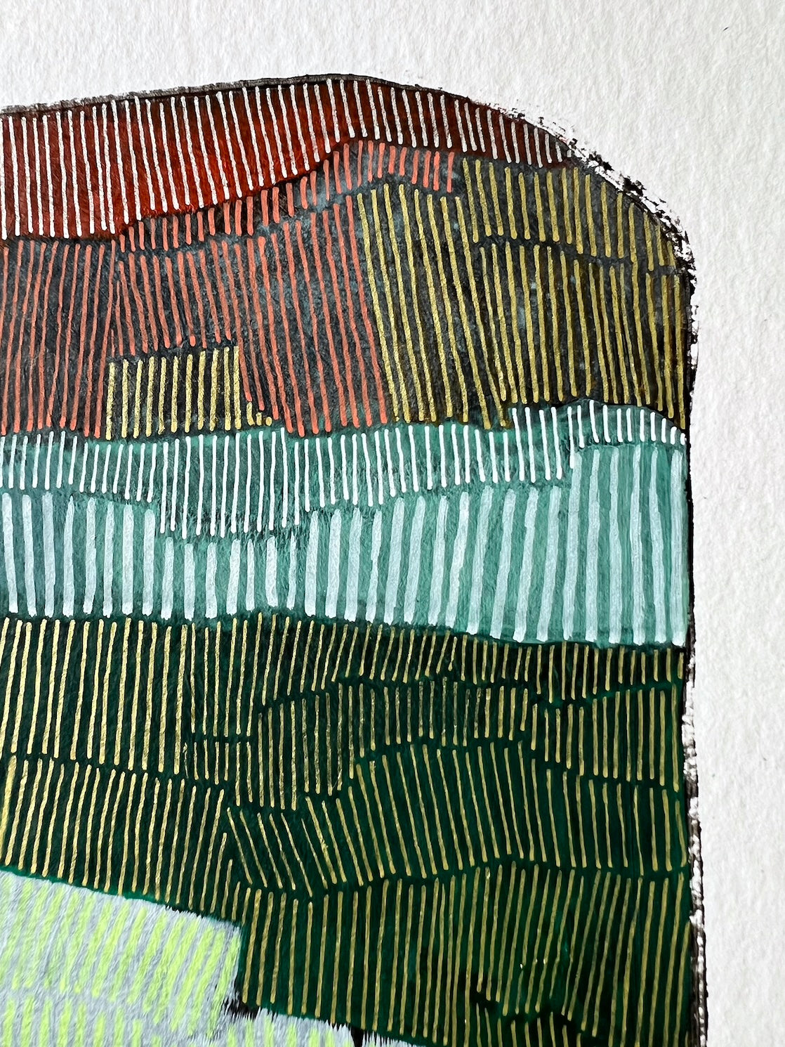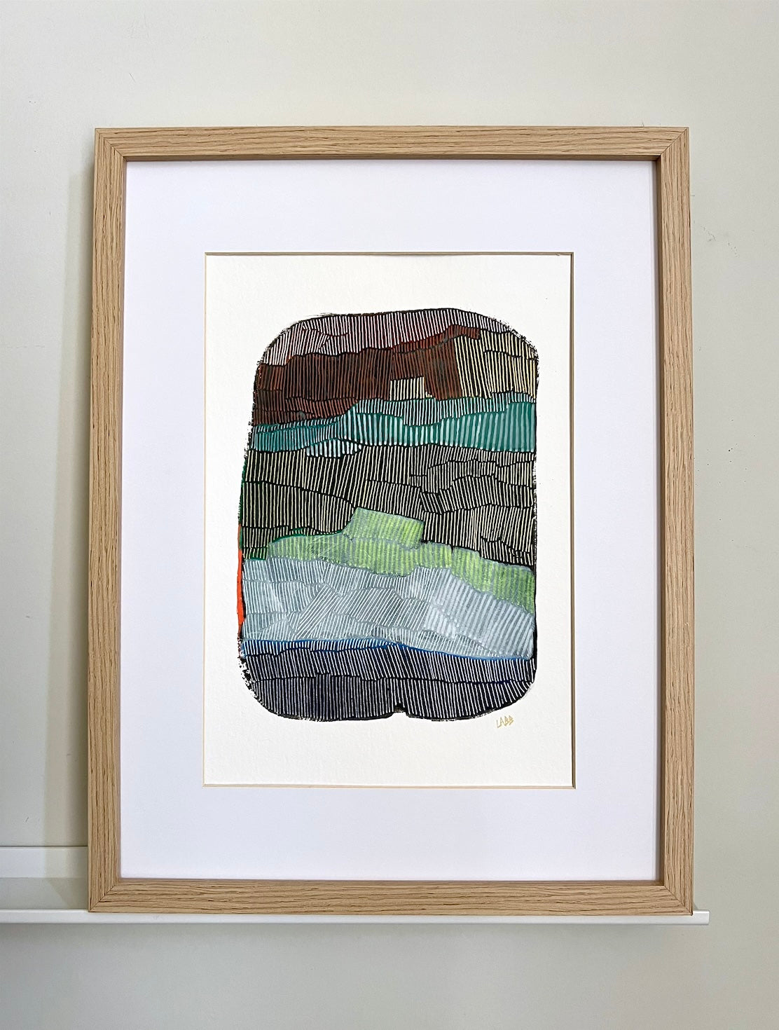 Avec ses strates colorées qui rappellent une coupe géologique ou un territoire vu du ciel, Stratotype 1 est une œuvre à la fois contemporaine, intime et vibrante. Une pièce unique, qui ne peut être reproduite.